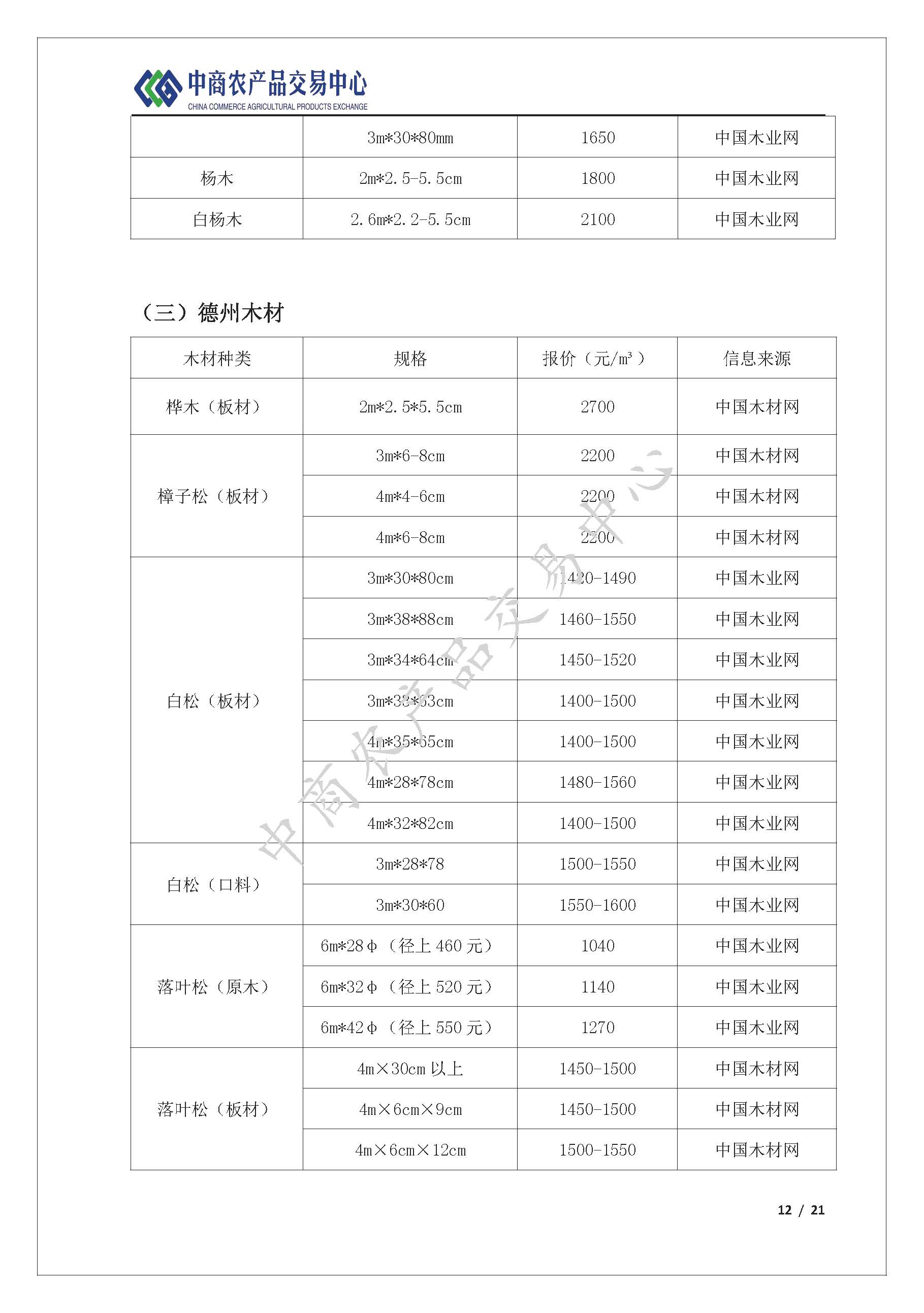 木材价格2021年第10周监测周报